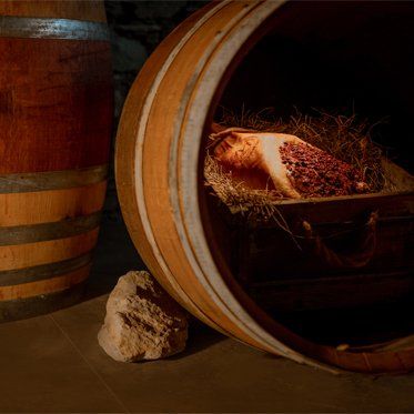 Il Prosciutto Crudo di Montagna Lurisia viene perlato con l’aggiunta del vino Barolo delle nostre vicine Langhe, stuccato con le vinacce profumate con Barolo, affinato in Barriques di Barolo per regalare al prodotto note ed essenze ancora più aromatiche e pregiate.