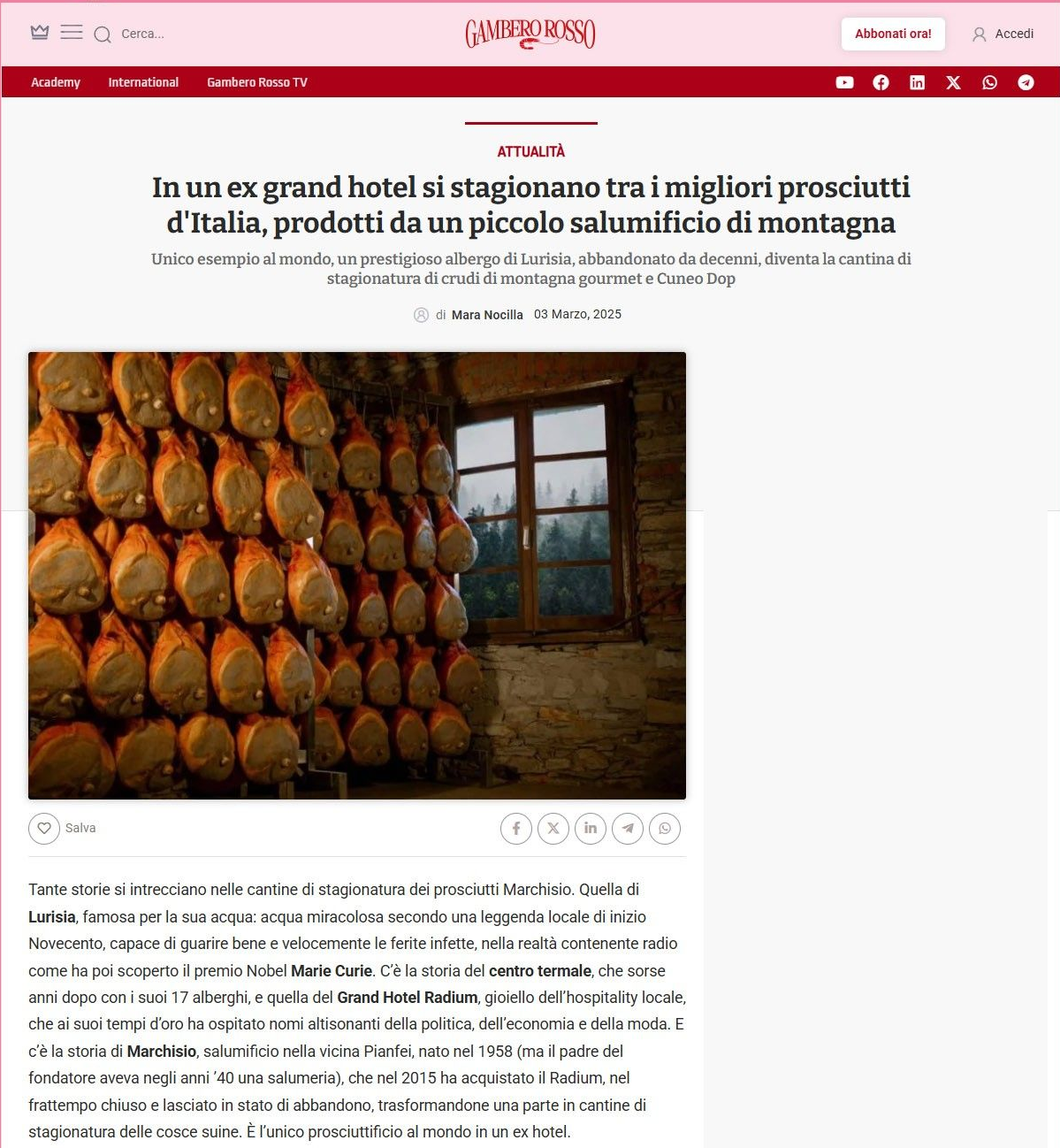 Prosciutto Crudo di Montagna Lurisia e Prosciutto Crudo di Cuneo D.O.P.